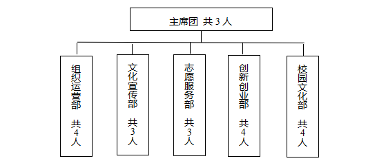 第八条建筑工程学院学生会主席团设执行主席三人。下设组织运营部、文化宣传部、志愿服务部、创新创业部、校园文化部共五个部们。第六届滨州学院建筑工程学院学生会共设部长3名,副部长15名。